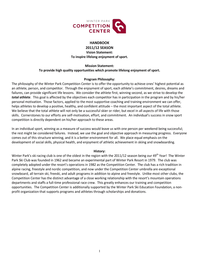 HANDBOOK 2011/12 SEASON Vision Statement: To inspire lifelong enjoyment of sport. Mission Statement: To provide high quality opportunities which promote lifelong enjoyment of sport. Program Philosophy: