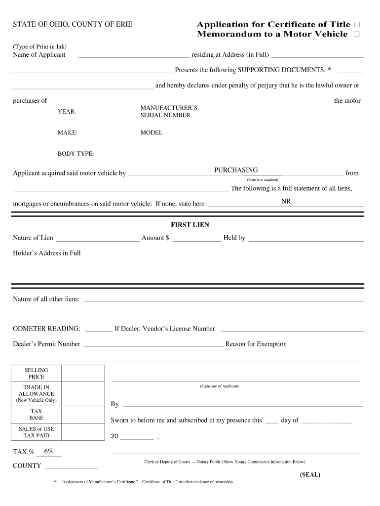 Get the free Ohio Motor Vehicle Title Application