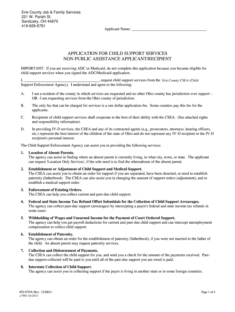 Any resident of Franklin County, Ohio, who requires assistance in collecting child support or establishing orders can apply for Child Support Services. This includes custodial and non-custodial parents.