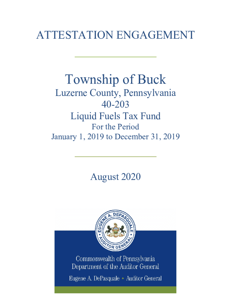 ATTESTATION ENGAGEMENT Township of BuckLuzerne County, Pennsylvania 40203 Liquid Fuels Tax Functor the Period January 1, 2019, to December 31, 2019, August 2020Independent Auditors Report Yasmin Grain,