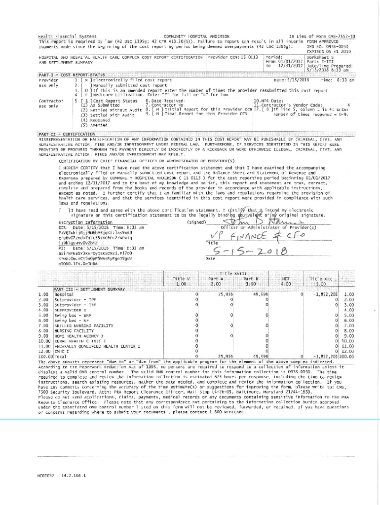 Health Financial Systems COMMUNITY HOSPITAL ANDERSON HOSPITAL AND HOSPITAL HEALTH CARE COMPLEX IDENTIFICATION DATA Provider CCN: 1501131.00 2.003.00 4.00 5.00 6.00 7.00 8.00 9.00 10.00 11.00 12.00