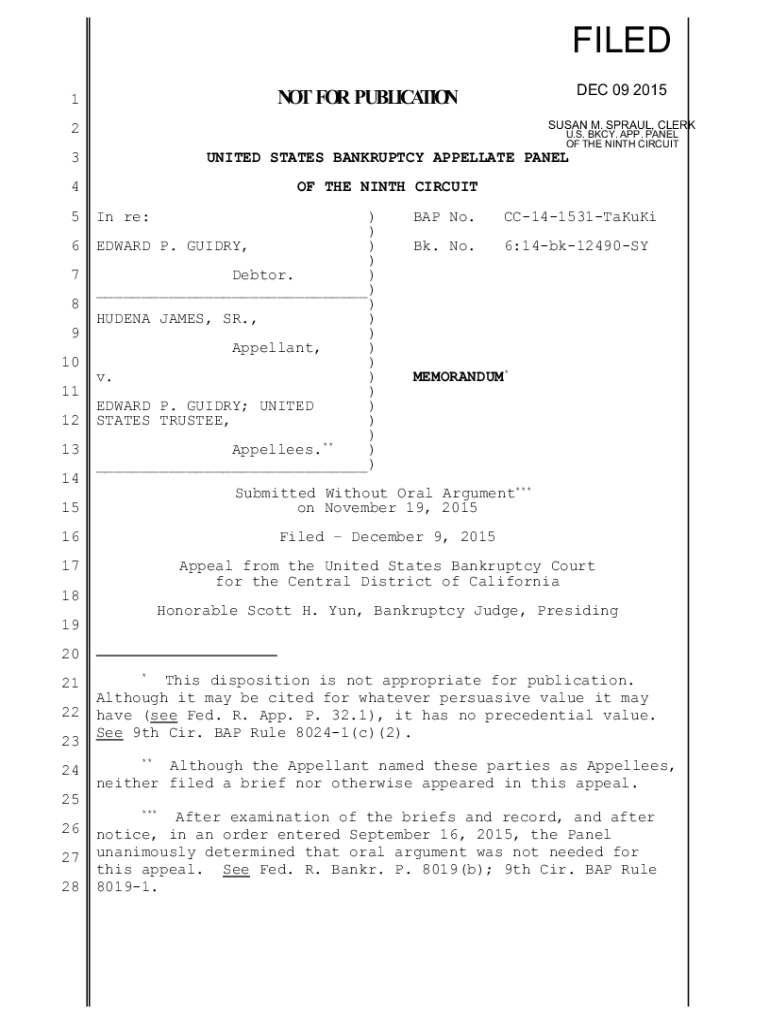 FILED DEC 09 2015NOT FOR PUBLICATION1SUSAN M. SPRAWL, CLERK2U. S. BCY. APP. PANEL OF THE NINTH CIRCUIT3UNITED STATES BANKRUPTCY APPELLATE PANEL4OF THE NINTH CIRCUIT5 6 7 8 9 10 11 12 13In re:)) EDWARD