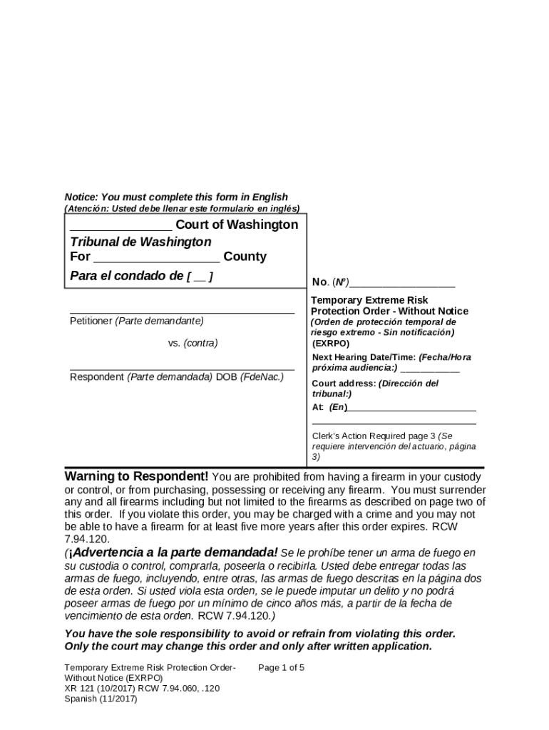 Instructions for the form Notice & Summons/Order to Appear - Washington