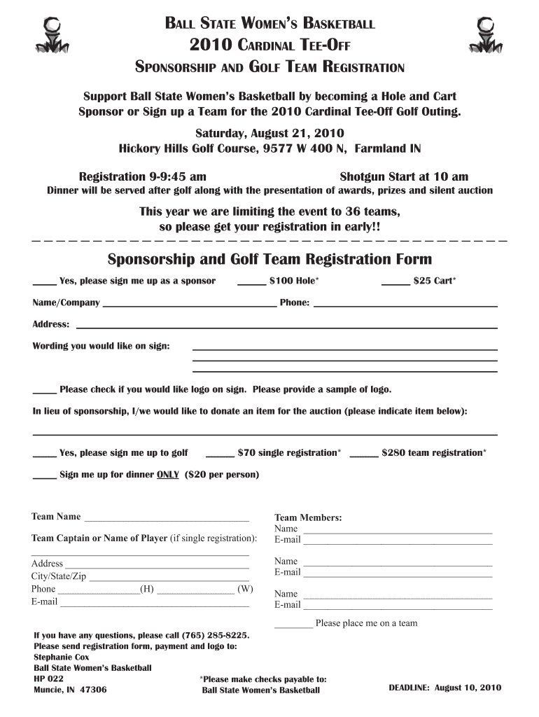 Get the free BALL STATE WOMEN S BASKETBALL 2010 CARDINAL TEE-OFF SPONSORSHIP AND GOLF TEAM REGIST...