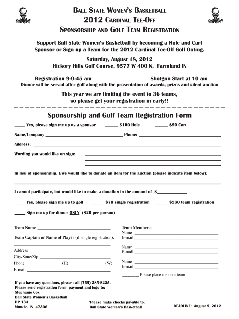 Get the free BALL STATE WOMEN S BASKETBALL 2012 CARDINAL TEE-OFF SPONSORSHIP AND GOLF TEAM REGIST...