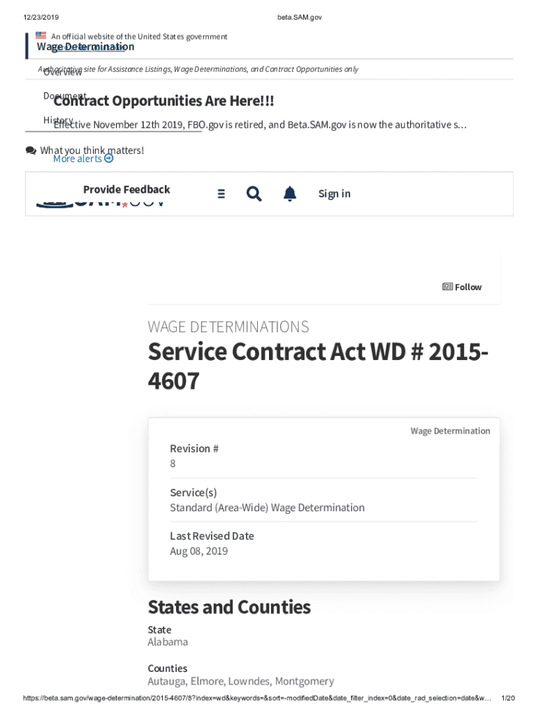 Overview site for Assistance Listings, Wage Determinations, and Contract