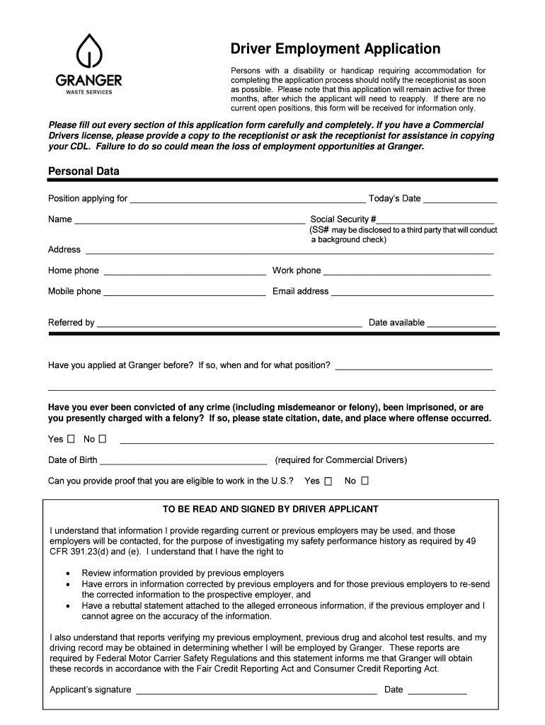 For individuals applying for jobs that mandate a CDL, the Driver Employment Application Form is essential as it aligns with the necessary legal standards and expectations within the transportation industry.