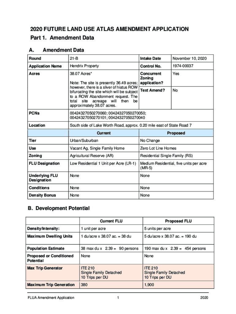 A. Amendment DataRound21BIntake Date November 10, 2020Application Name Hendrix PropertyControl No.197400037Acres38.07 Acres×Concurrent