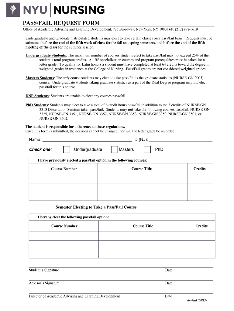 After submitting the Pass/Fail Request Form, it will undergo a review period where the relevant academic personnel assess your request. You will receive notifications regarding the status of your application, ensuring you remain informed throughout the process. Understanding the subsequent steps after your request is processed is vital for your academic planning, including action to take if the request is not approved.