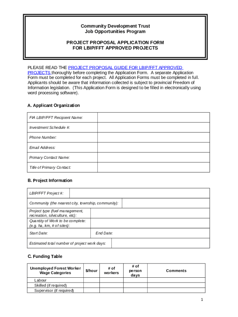 Community Development Trust. Job Opportunities LBIP/FFT Project Proposal Application template instructions