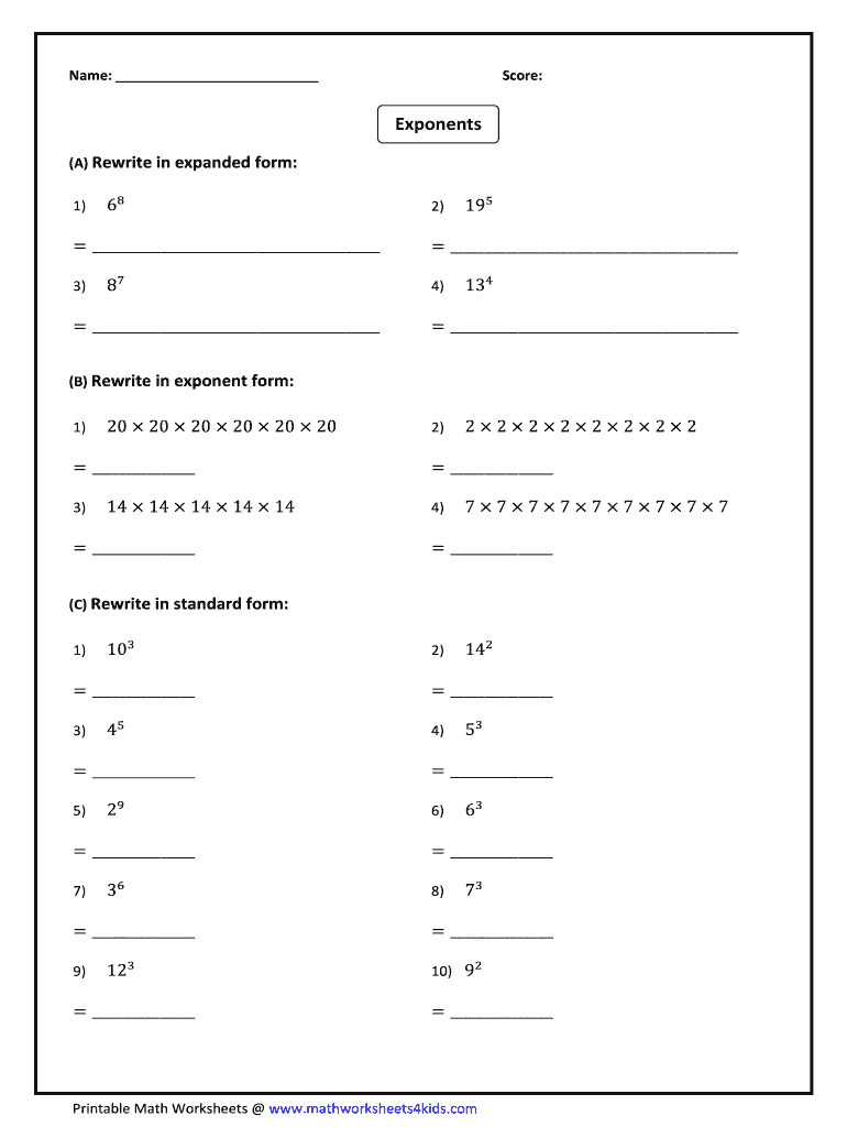 Get the free Exponents Math Worksheet