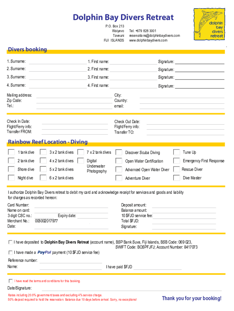 Edit your divers booking form online