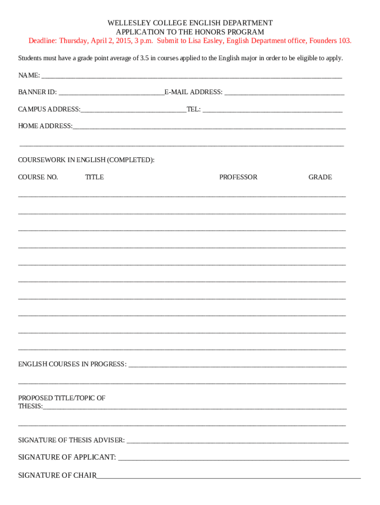 How to fill out Submit to Lisa Easley, English Department office, Founders 103