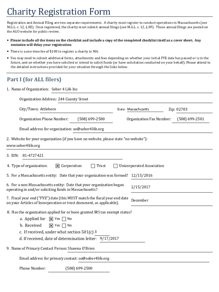 Get the free A charity must register to conduct operations in Massachusetts (see