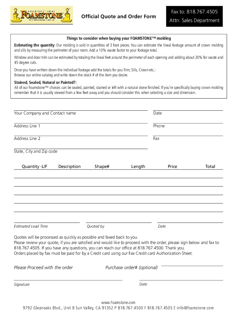 Edit your ofcial quote and order form online