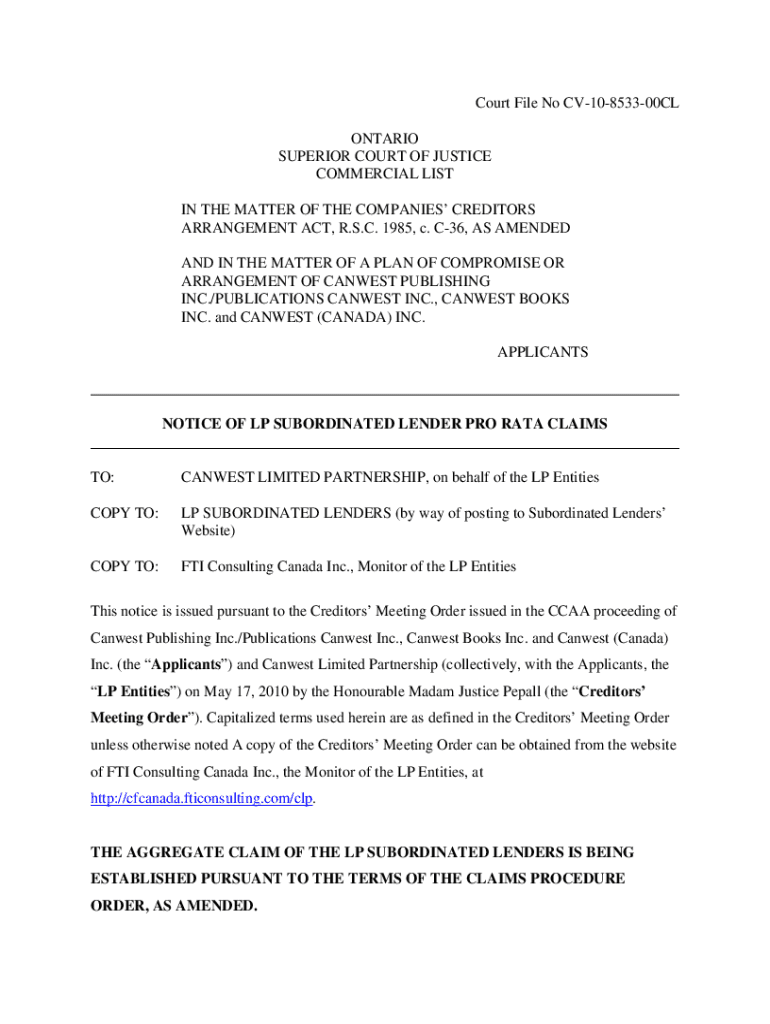 Get the free Subordinated Lender Forms 2.DOC