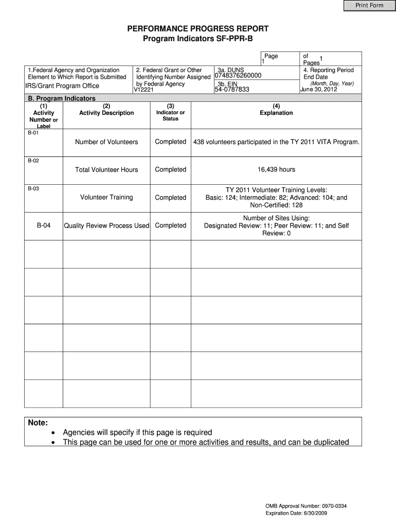 The Performance Progress Report (SF-PPR-B) is a government form used by federal agencies and organizations to report on the progress of federal grants and awards.