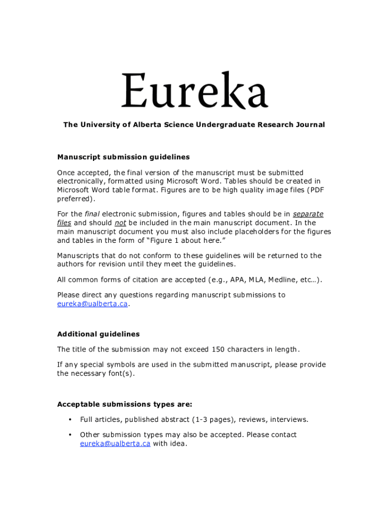 The University of Alberta Science Undergraduate Research JournalManuscript submission guidelines