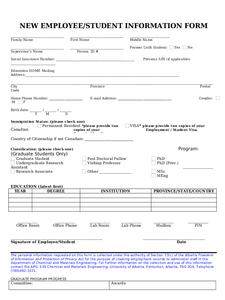 What is New Graduate Student/Research/Staff Form?