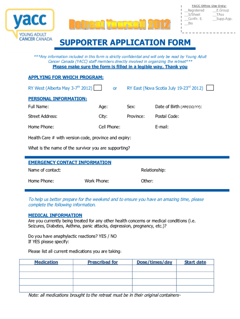 YACC Office Use Only: Registered E. Group S/Sheet Confirm. E. Supporter APPLICATION FORM ***Any information included in this form is strictly confidential and will only be read by Young Adult Cancer