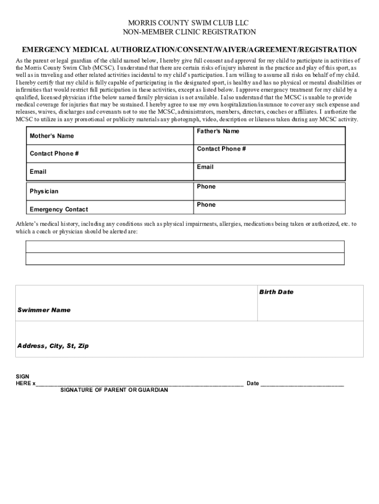 EMERGENCY MEDICAL AUTHORIZATION/CONSENT/WAIVER/AGREEMENT/REGISTRATION