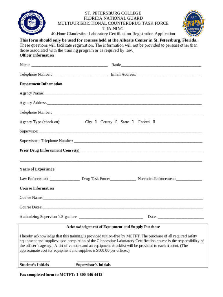 Template 40-Hour Clandestine Laboratory Certification Registration Application instructions