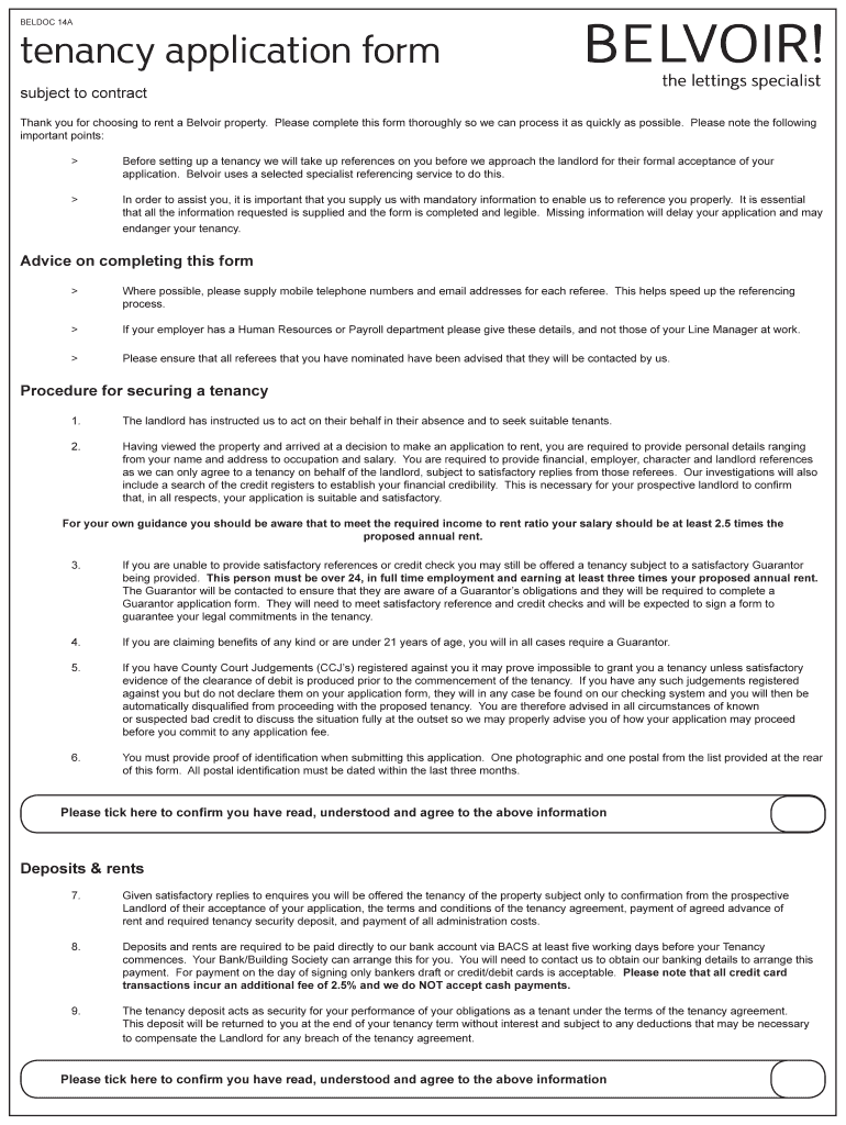 Key Features of the Belvoir Tenancy Application Form