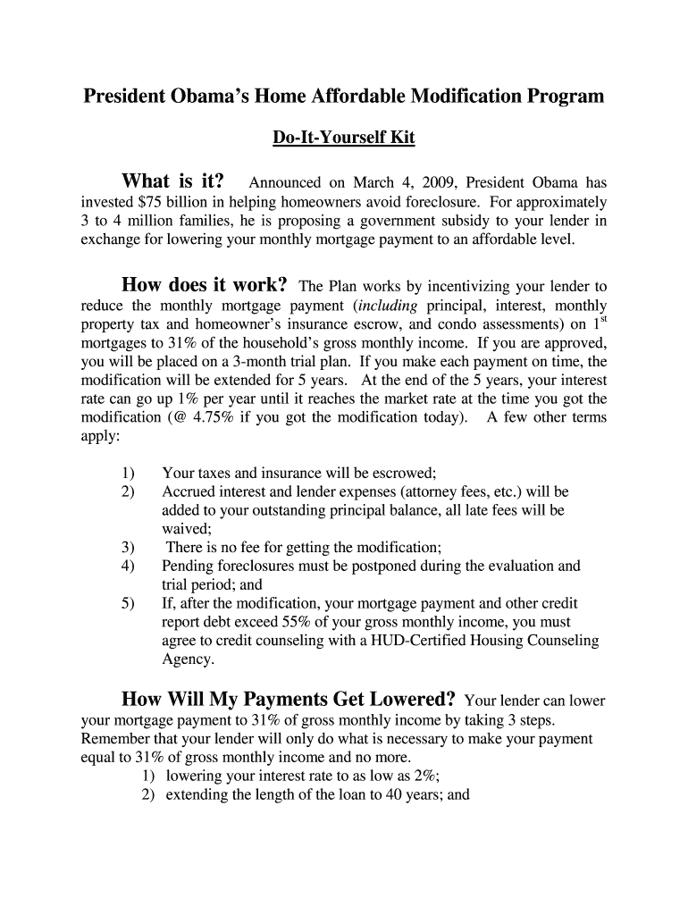Get the free Obama Home Affordable Modification Program