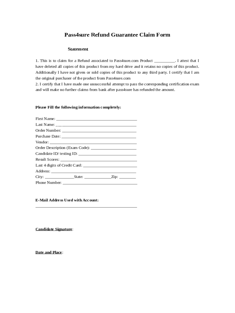 Instructions for the form Pass4sure Refund Guarantee Claim