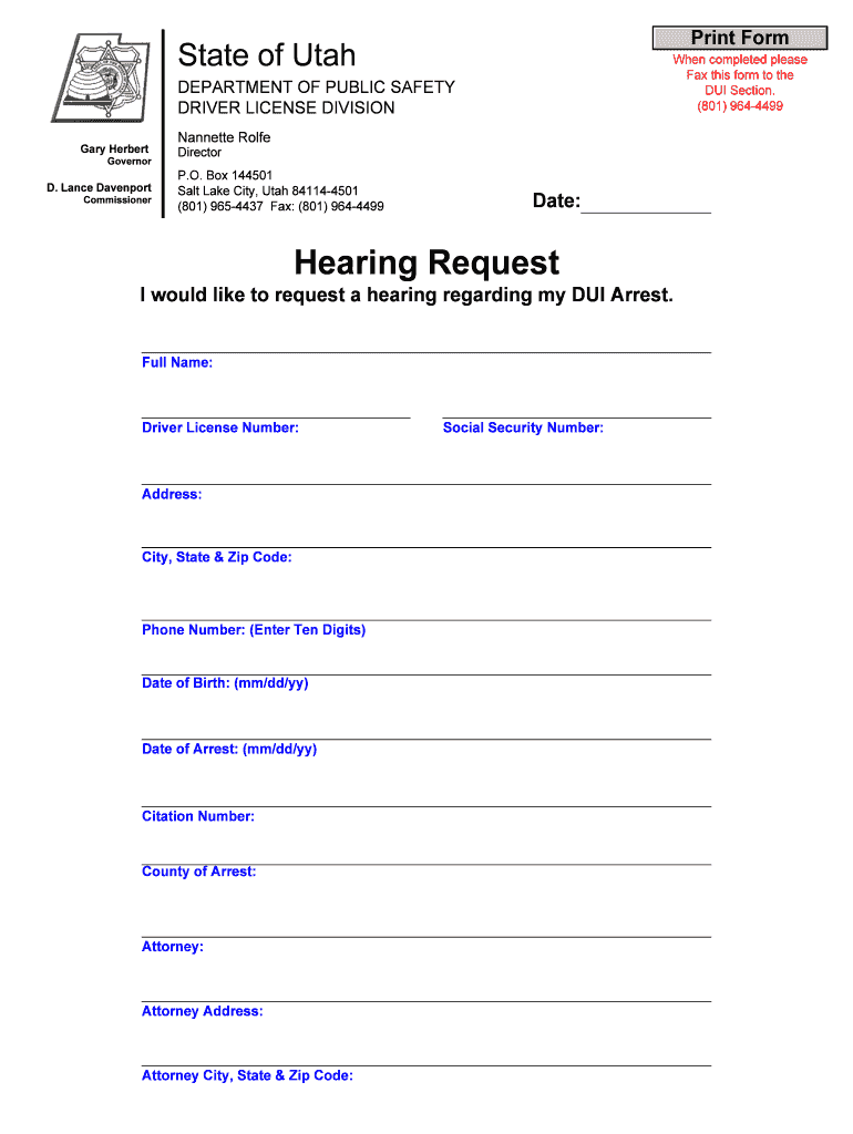 How to fill out the utah dui hearing request