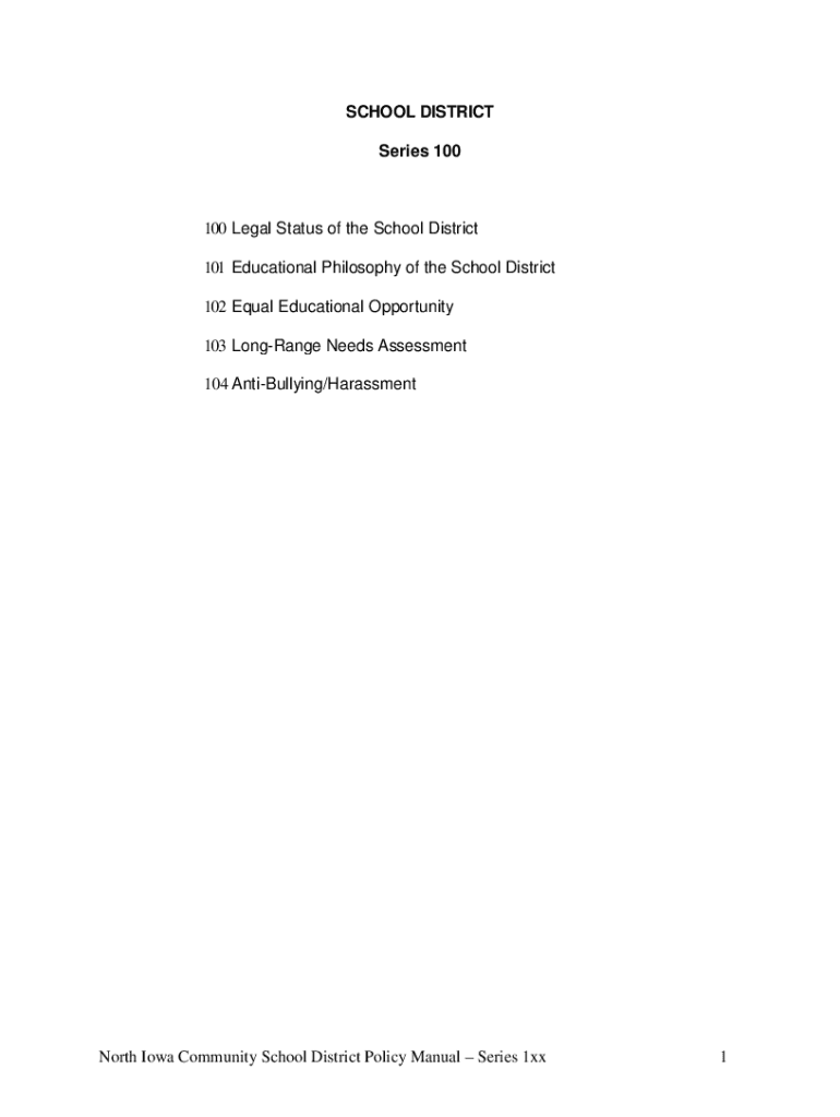 Get the free North Iowa Community School District Policy Manual Series 1xx 1 ... - sharepoint nor...