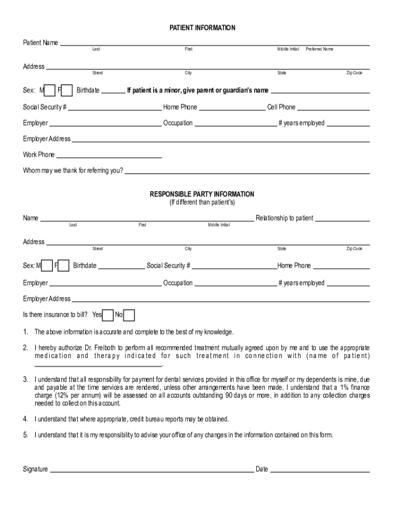 PATIENT INFORMATION Patient Name AddressLastFirstMiddle InitialStreetCityStateSex: M F BirthdatePreferred Name Code patient is a minor, give parent or guardian's antisocial Security #Home PhoneEmployerOccupationCell