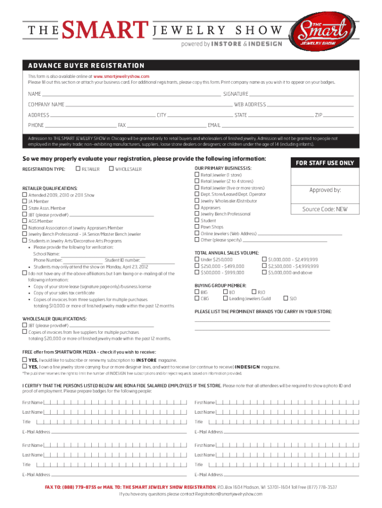 This form is also available online at www.smartjewelryshow.com