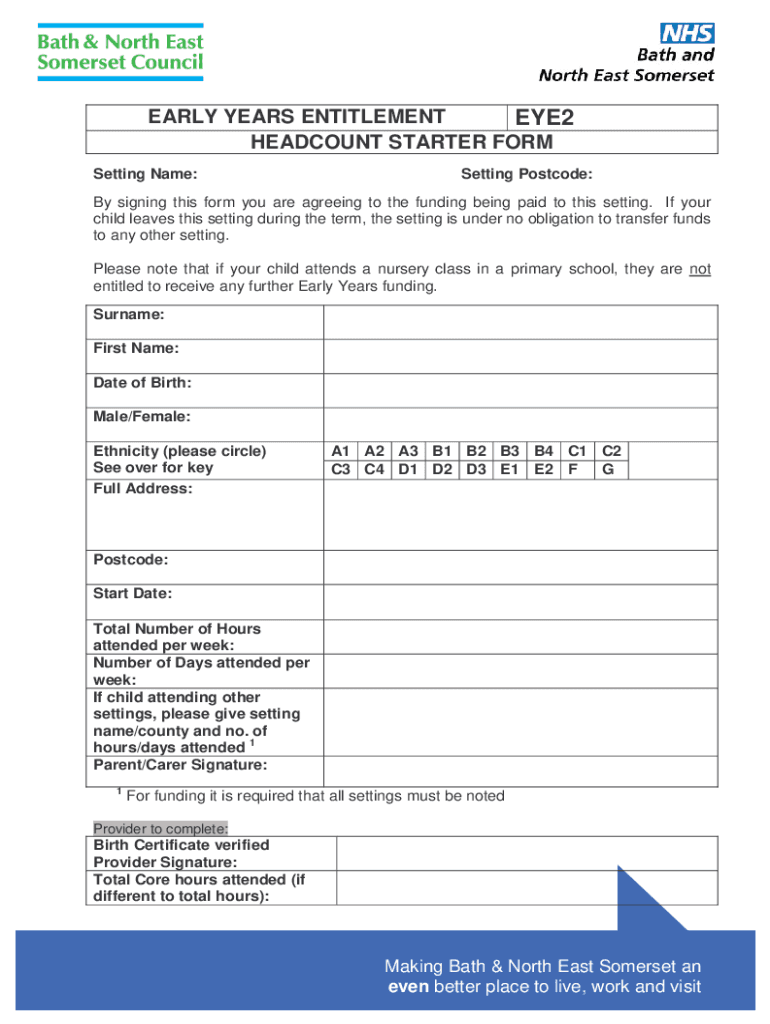 Get the free EARLY YEARS ENTITLEMENT EYE2 HEADCOUNT STARTER FORM