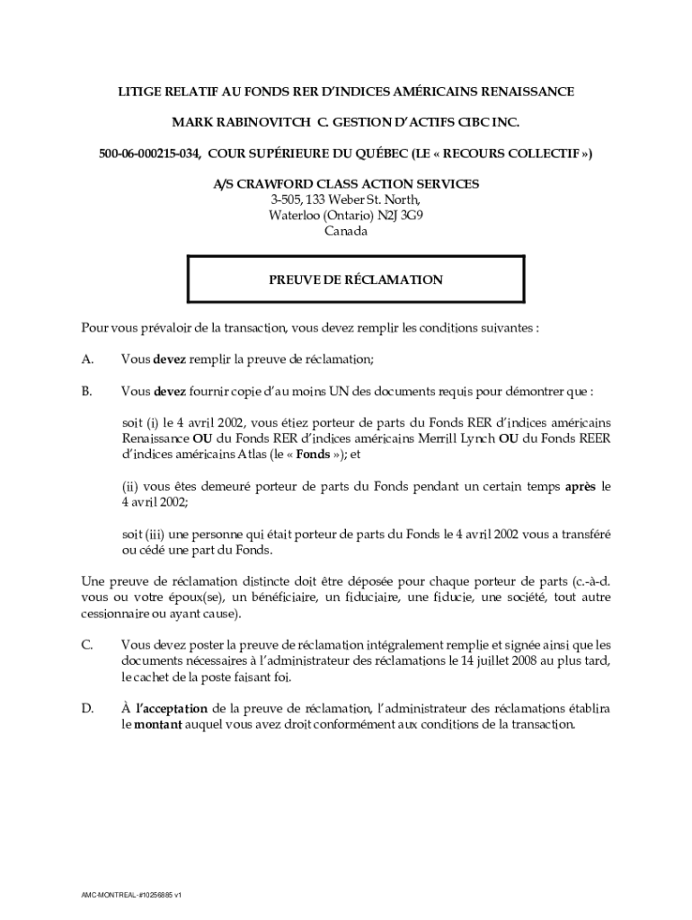 LIT IGE RELATED AU FINDS RER INDICES AMERICANS RENAISSANCE MARK RABINOVITZ C. SECTION TACTICS CIBC INC. 50006000215034, FOUR SUPREME DU QUEBEC (LE RECOURSE COLLECT IF) A/S CRAWFORD CLASS ACTION SERVICES