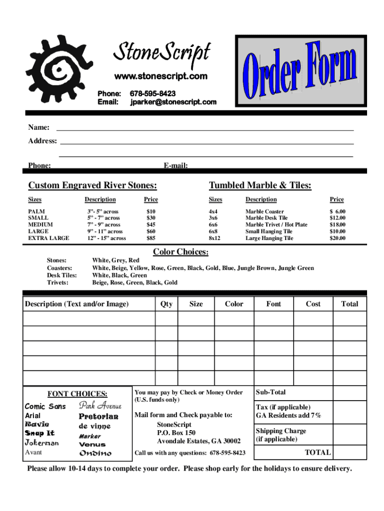 Conscript www.stonescript.com Phone: Email:6785958423 Parker stone script.compare: Address: Phone: Email: Custom Engraved River Stones:Tumbled Marble & Tiles:SizesPriceSizesDescriptionPrice$$$$$10304560854×4