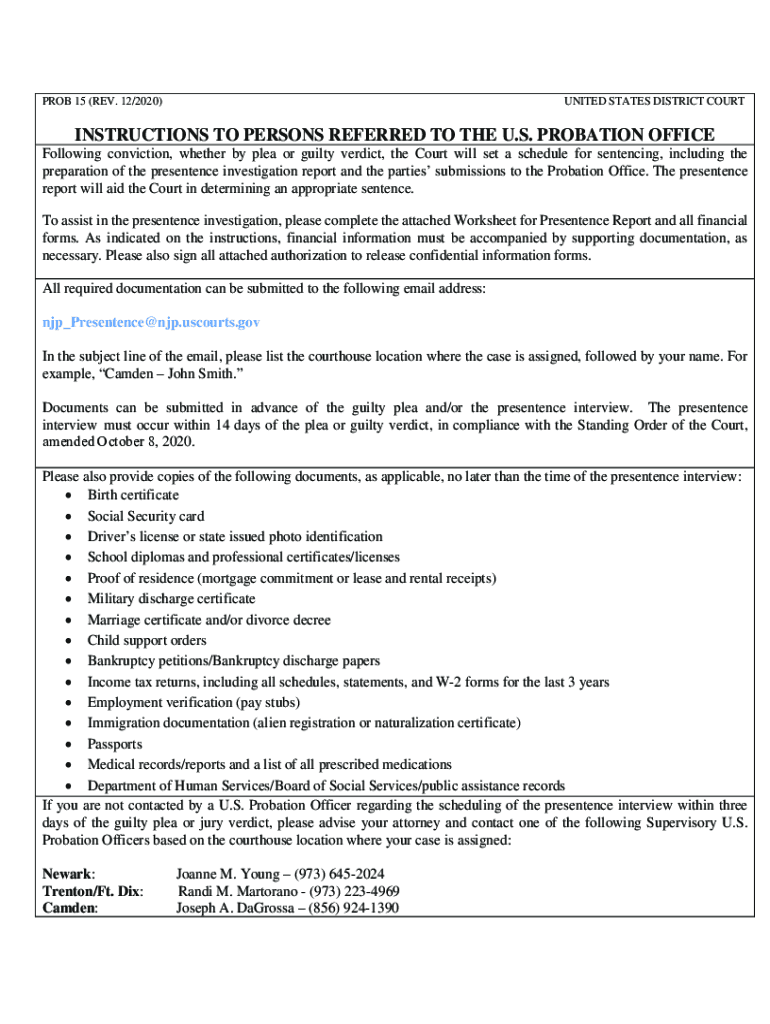 PROB 15 (REV. 12/2020)UNITED STATES DISTRICT COURTINSTRUCTIONS TO PERSONS REFERRED TO THE U.S. PROBATION OFFICE