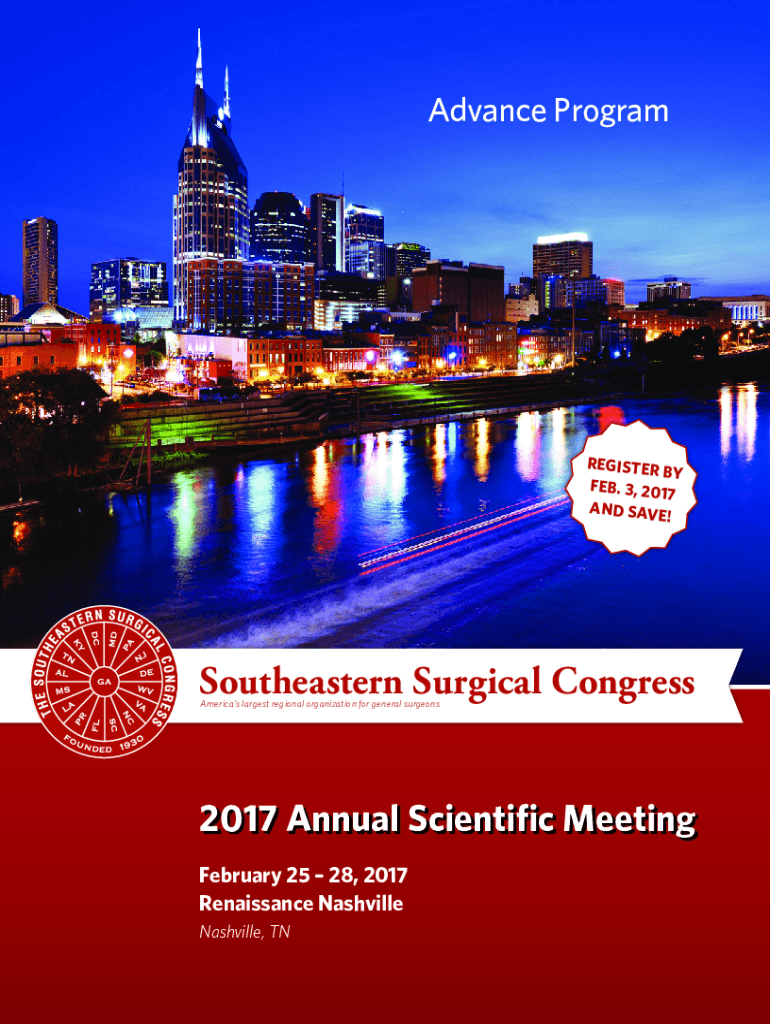 Advance ProgramREGISTER B Y FEB. 3, 2017 AND SAVE! Southeastern Surgical Congress America's largest regional organization for general surgeons2017 Annual Scientific Meeting February 25 28, 2017 Renaissance