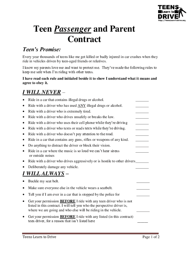 Get the free Teen Passenger and Parent Contract - Teens Learn to Drive ...