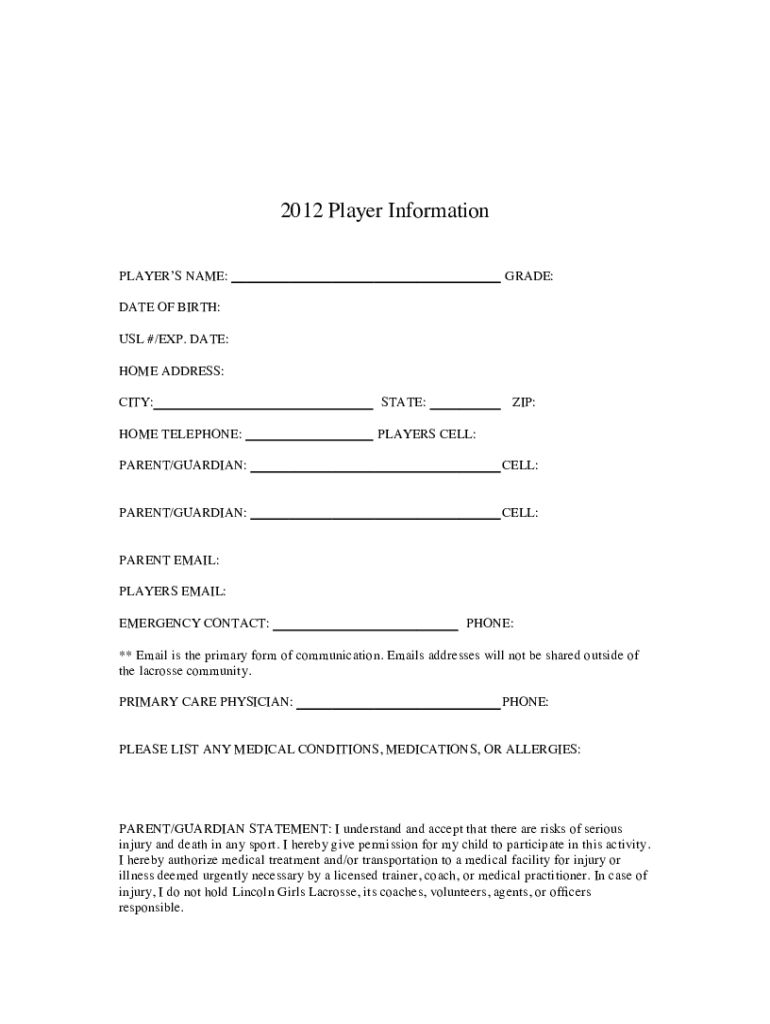 Fill out your 2012 player form 345678 online with pdfFiller!