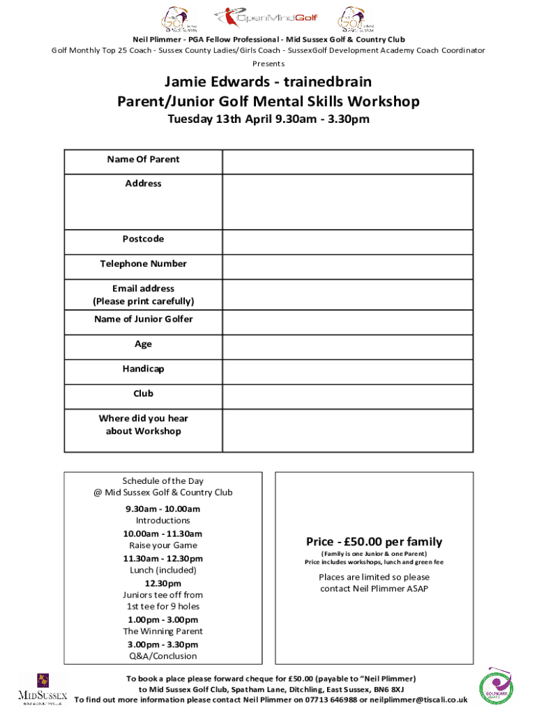 Neil Slimmer PGA Fellow Professional Mid-Sussex Golf & Country Club