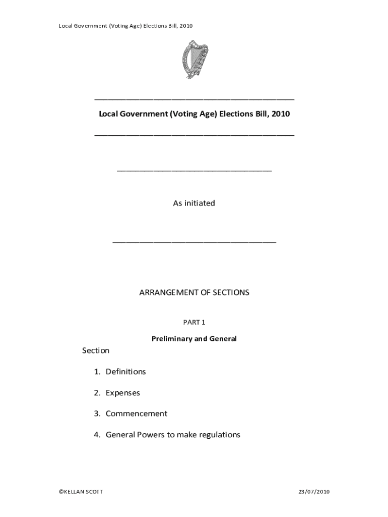 LocalGovernment(Voting)Elections Bill,2010 LocalGovernment(Voting)Elections Bill,2010 As initiated ARRANGEMENTOFSECTIONS PART1PreliminaryandGeneral Section 1. Definitions 2. Expenses 3. Commencement