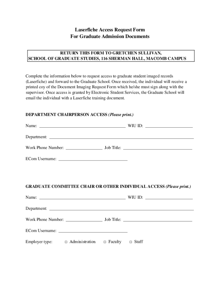 Get the free Laserfiche Access Request Form For Graduate Admission Documents