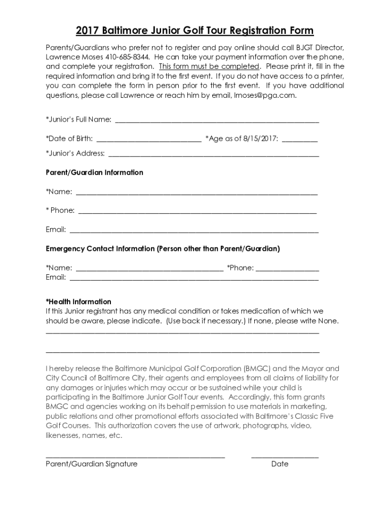 2017 Baltimore Junior Golf Tour Registration Form