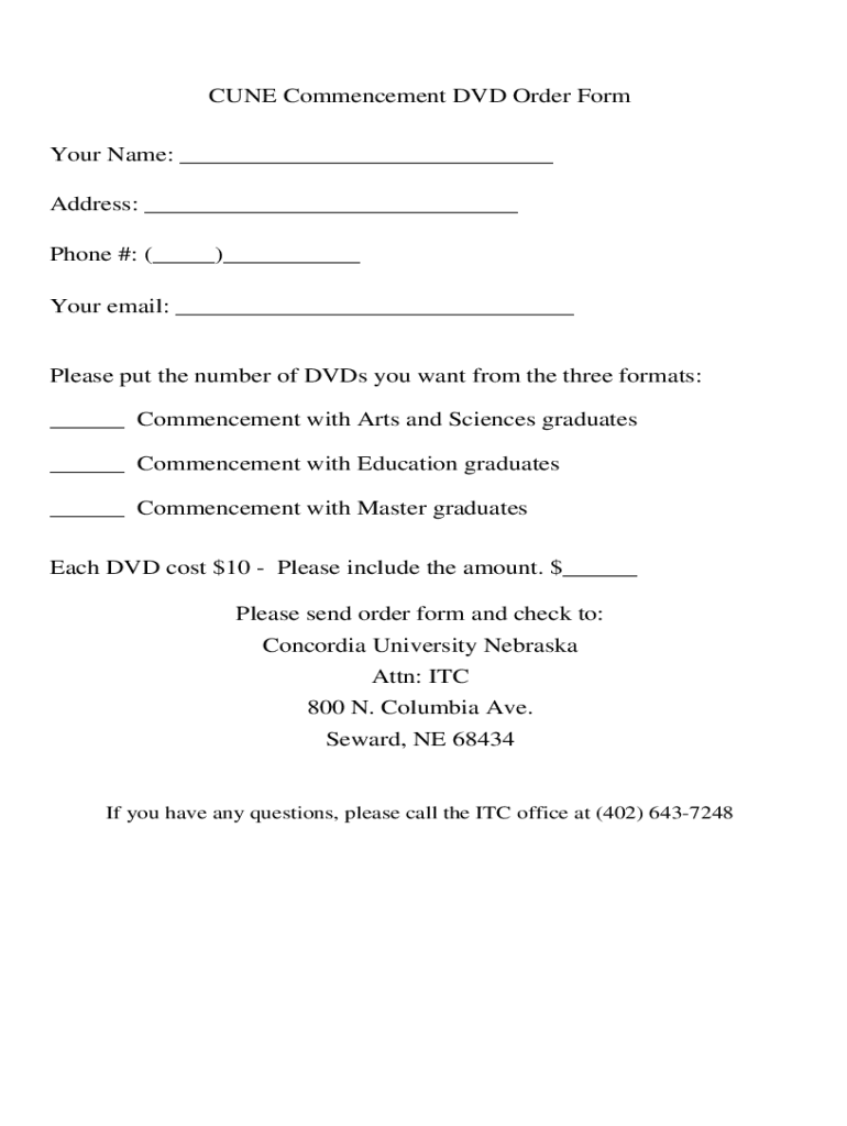 JUNE Commencement DVD Order Form Your Name: Address: Phone #: () Your email: Please put the number of DVDs you want from the three formats: Commencement with Arts and Sciences graduates Commencement