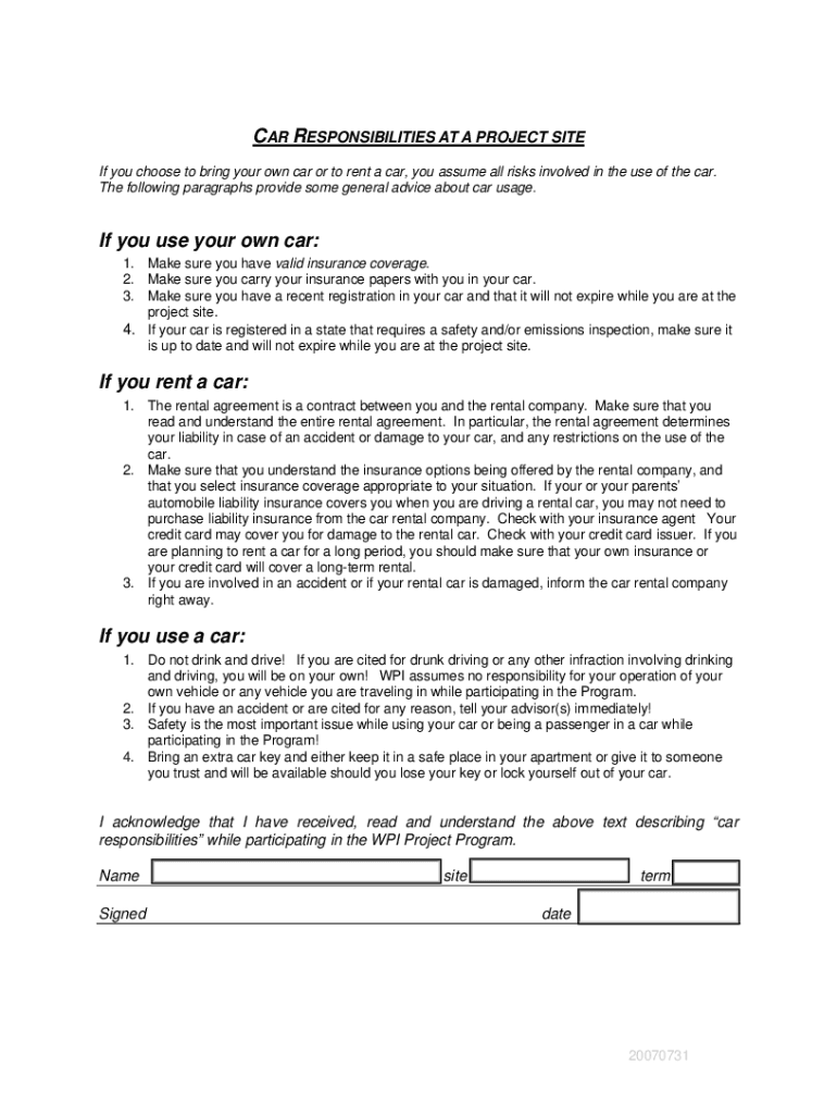 Get the free Car Responsibilities Form domestic.doc