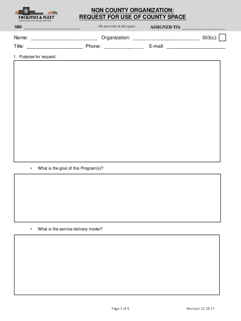 Get the free NON COUNTY ORGANIZATION REQUEST FOR USE OF COUNTY SPACE