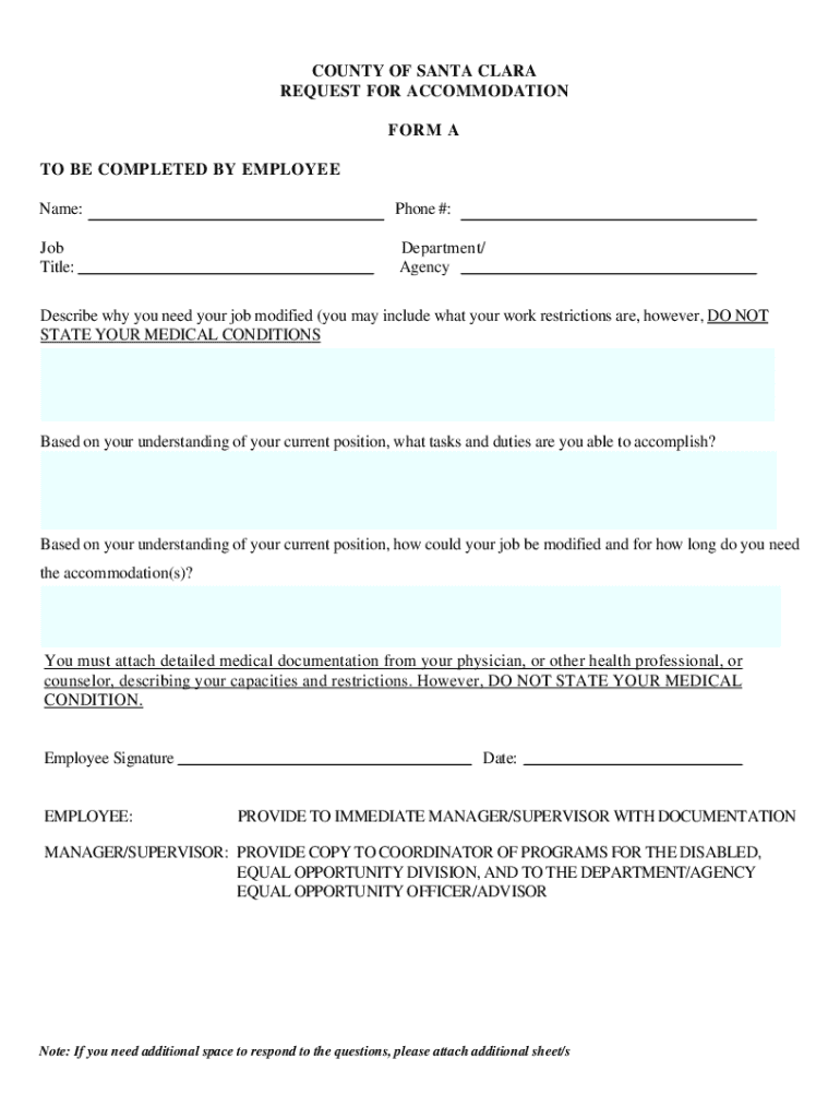 A request for accommodation employee is a formal appeal made by an employee to an employer for adjustments or modifications to the workplace or job duties to address specific needs, usually related to medical conditions or disabilities.