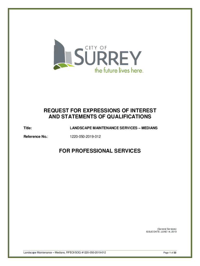 REQUEST FOR EXPRESSIONS OF INTEREST AND STATEMENTS OF QUALIFICATIONS Title:LANDSCAPE MAINTENANCE SERVICES MEDIANSReference No.:12200502019012FOR PROFESSIONAL SERVICES(General Services) ISSUE DATE: