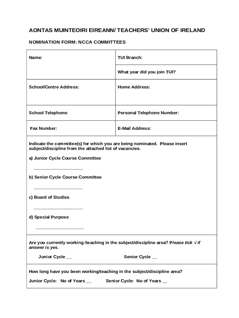 Instructions for the form AONTAS MUINTEOIRI EIREANN/ TEACHERS UNION OF IRELAND